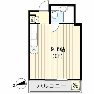 | 間取り | ワンルーム(洋 9.6) | 主要採光面 | 西 |